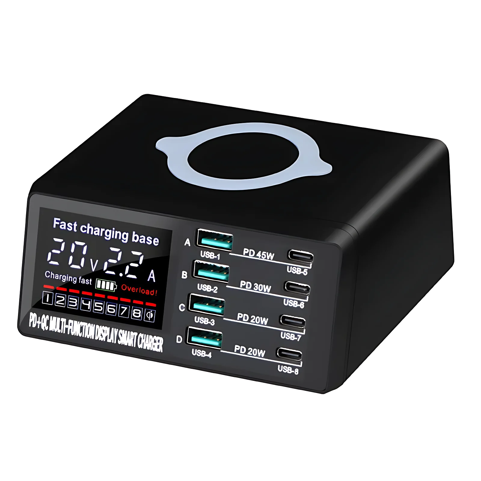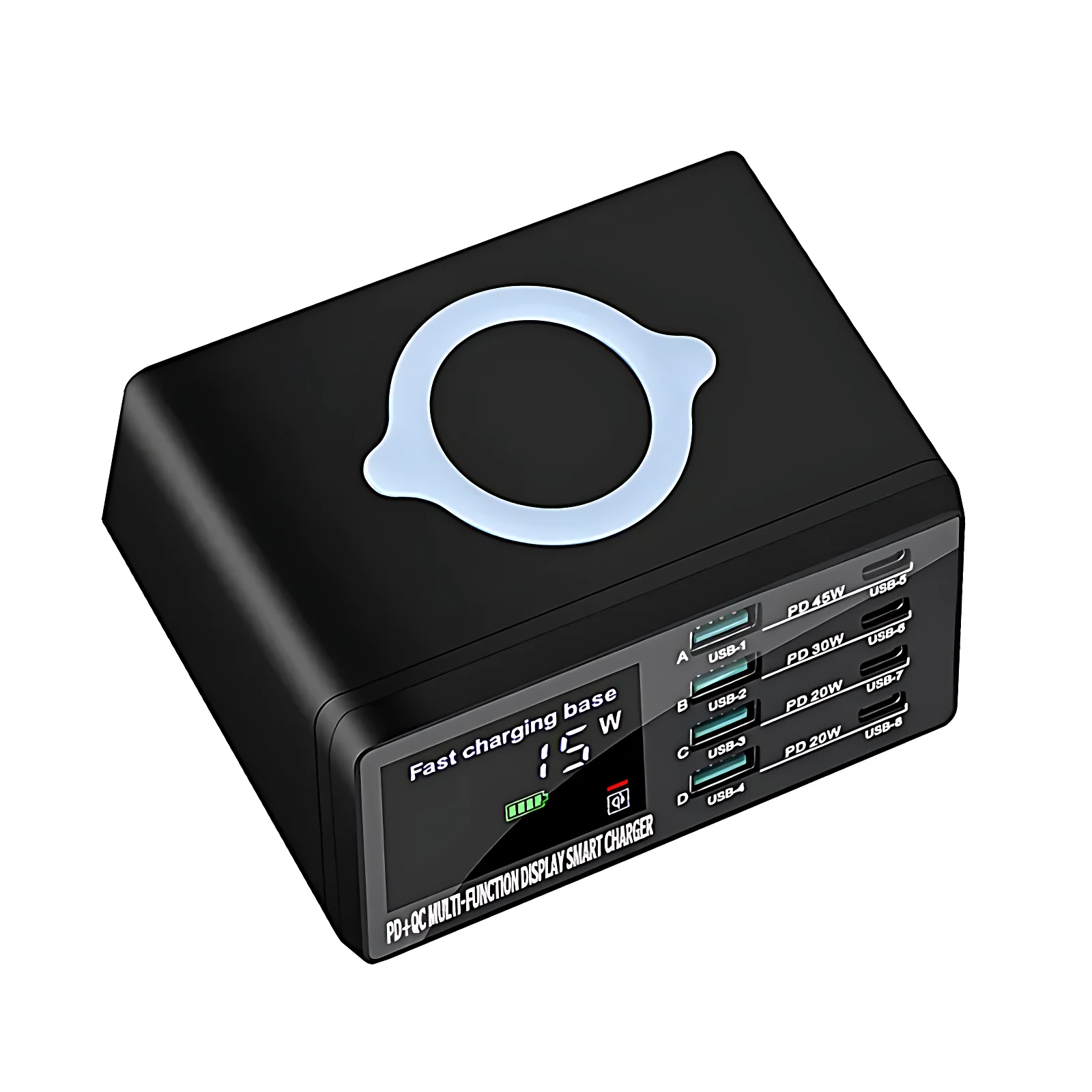 Grâce à sa technologie de charge sans fil rapide de 45W, ce chargeur élimine le désordre des câbles et assure une charge stable et efficace. Son écran numérique intégré affiche en temps réel l’état de charge pour un contrôle pratique et précis.