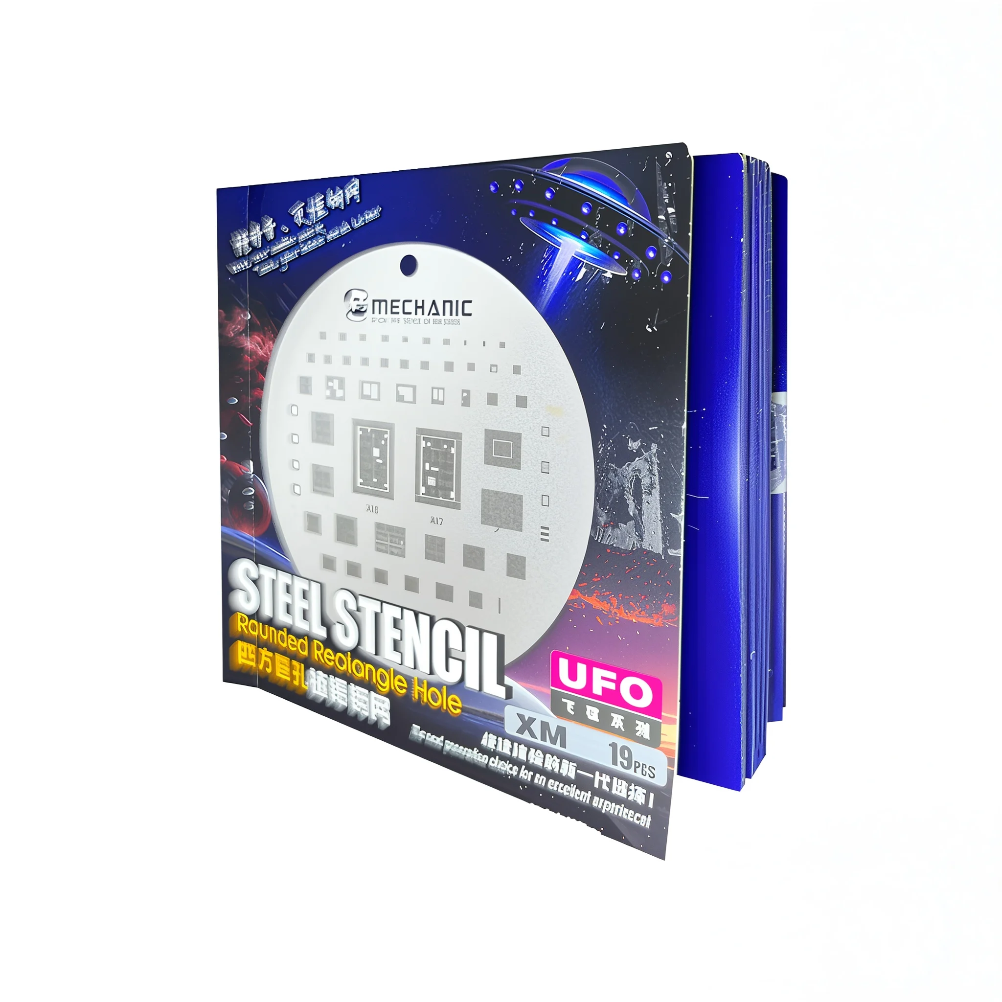 Le Mechanic UFO 14 est un ensemble de pochoirs de reballing BGA (Ball Grid Array) haut de gamme, spécialement conçu pour les techniciens en micro-soudure et réparation électronique. Ces pochoirs permettent l’application précise de pâte à souder sur les puces BGA (CPU, GPU, IC, etc.) avant leur soudage sur la carte mère.
